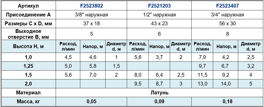 Высота струи max, м
